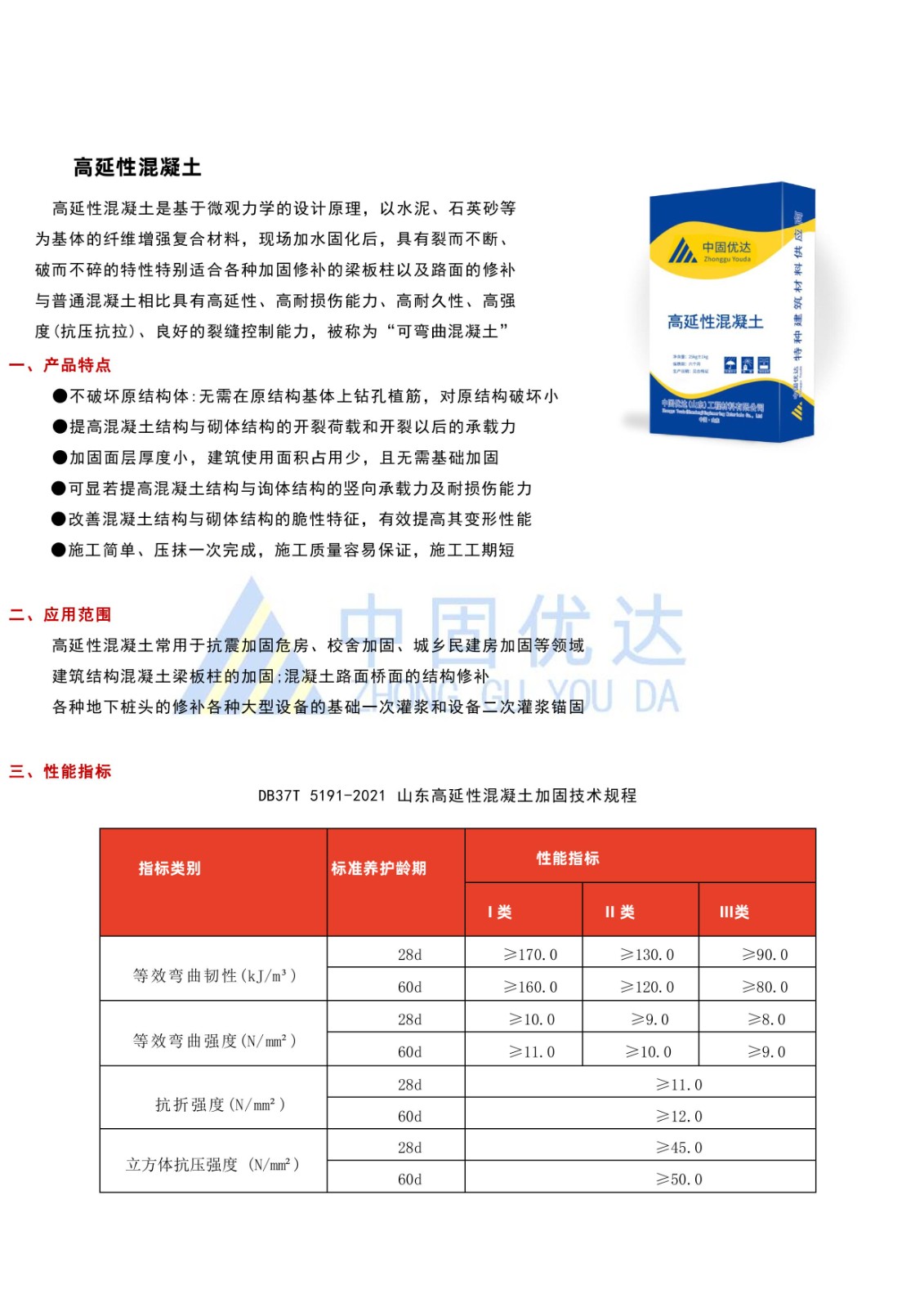 宣城高延性混凝土 宣城高延性混凝土是具有高抗裂性、高延展性、高韧性、高耐损伤的一种高富纤维混凝土,采用特种水泥和骨料,辅助高韧性高弹性纤维和外加剂混合而成,现场加水固化后,具有裂而不断、破而不碎的特性,用于各加固修补的梁板柱以及路面的修补。